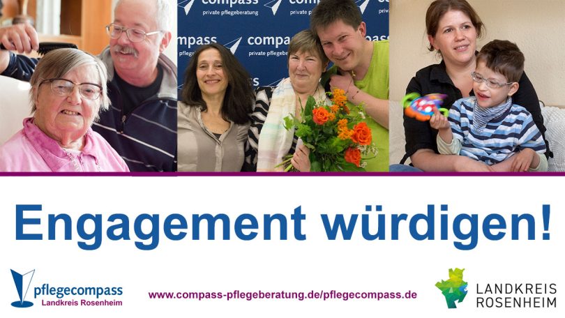 Werden Menschen pflegebedürftig, benötigen Sie ein gutes Netzwerk, das sie unterstützt und versorgt. Diese helfenden Menschen – ob pflegende Angehörige, ehrenamtlich Pflegende oder Projekte für pflegebedürftige Menschen aus der Region – zeichnen der Landkreis Rosenheim und die Pflegeberatung compass nun gemeinsam mit einem Pflegepreis aus. Der Nominierungszeitraum startet am 16. Mai 2022.