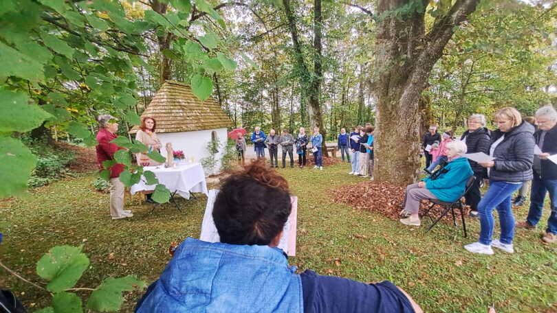 Musikalisch haben Roswitha Sax (Gitarre), Emma Dumpler, Leonie Vodermaier (beide Querflöte) und Christoph Eder (Ziach) die Feierstunde mitgestaltet. Der Einklang von Glauben und Schöpfung wurde auch bei dieser Feierstunde spürbar, hat doch das dichte Laub der mächtigen Bäume um die kleine Kapelle, die Gläubigen vor den leichten Regen während der Andacht geschützt