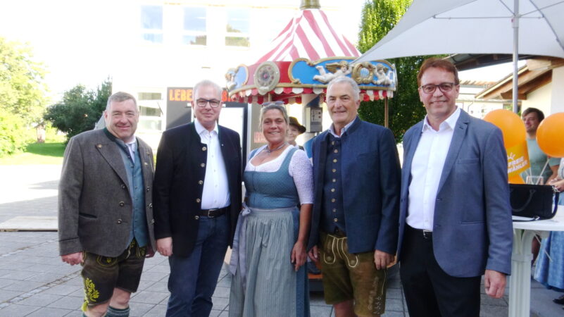 Foto vor Karusell: v.l. Sepp Lausch,MdL, Florian Streibl,MdL, Barbara Stein,Bezirksrätin, Sepp Hofer stellv. Landrat, Bezirksrat , Josef Baumann, Gemeinderat FW