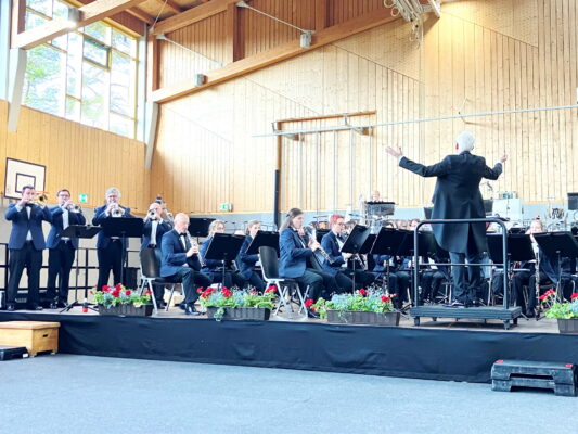 Mit einem Trommelwirbel und Fanfaren von vier Trompetern begann der Königsmarsch von Richard Strauss mit „Musikalischer Pracht“ in einer „Atmosphäre voller Glanz und Erhabenheit“ – so beschrieb Moderator Dr. Tobias Horneber dieses, Kaiser Wilhelm II. gewidmete, feierliche Werk, das gleichzeitig dem 50-jährigen Jubiläum Rechnung trug. Ein klangvoller Gegensatz entwickelte sich zwischen den Marschteilen der Blechbläser und den Holzbläsern mit ihrem liedhaften Legato.