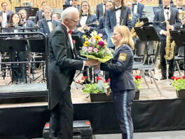 3: Die stellvertretende Polizeidirektorin Angelika Deiml überreicht Blumen an den Chefdirigenten Johann Mösenbichler.