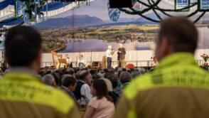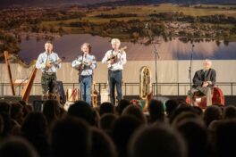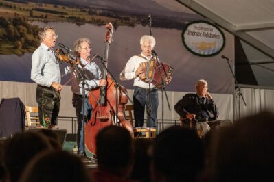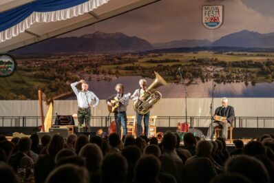 Im Rahmen des großen Musikfestes gastierten Gerhard Polt und die Wellbrüder am Chiemsee und legten vor vollbesetztem Zelt einen grandiosen Auftritt hin. Hochmotiviert und gut drauf hauten die vier Bühnen-Routiniers ihre Gschichten raus, sowohl schräg-musikalisch wie auch wortgewandt in bekannter Polt-Manier. Das Publikum hat den „Bayerischen Abend“ sichtlich gefeiert und auch den Künstlern konnte man die Spielfreude und Begeisterung anmerken. Neben bewährten Klassikern konnten die drei hochmusikalischen Brüder aus dem Biermoos und ihr langjähriger Weggefährte Gerhard Polt auch mit Beiträgen zu aktuellen Themen überzeugen und gingen in ihren Gstanzln sogar auf lokale Bekanntheiten ein. Der Kontakt zu den Leuten vor der Bühne funktionierte und die Resonanz war überwältigend. Nach dem herzlichen Dank von Musikvereinsvorstand Christian Kroner und der Übergabe der Gastgeschenke an die bayerischen Musikkabarett-Legenden war natürlich noch die eine oder andere Zugabe fällig. Den durchaus recht gelungenen Abend rundete dann das zünftige Reblaus-Trio auf der Barbühne ab.