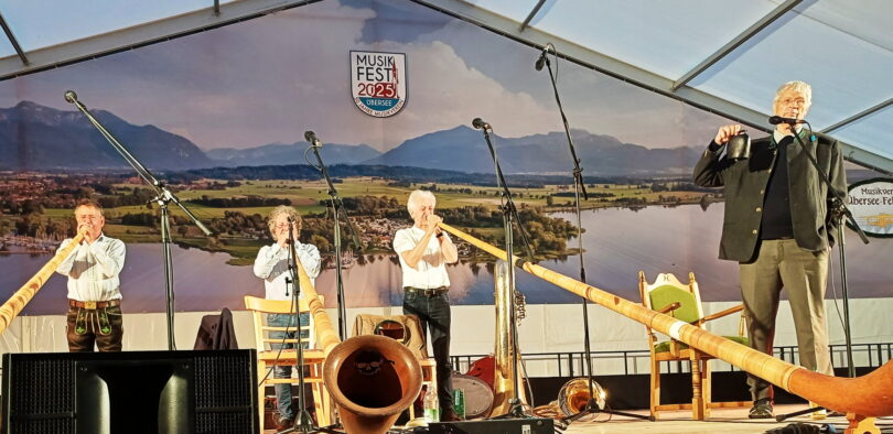 Mit rund 2.000 Besuchern war das Festzelt beim Musikfest in Übersee brechend voll. Wegen der hervorragenden Organisation und Arbeit der Techniker aber waren Gerhard Polt und die unvergleichliche Musik der drei Well-Brüder Michael, Christoph (Stofferl) und Karli sogar ganz hinten noch gut zu hören.