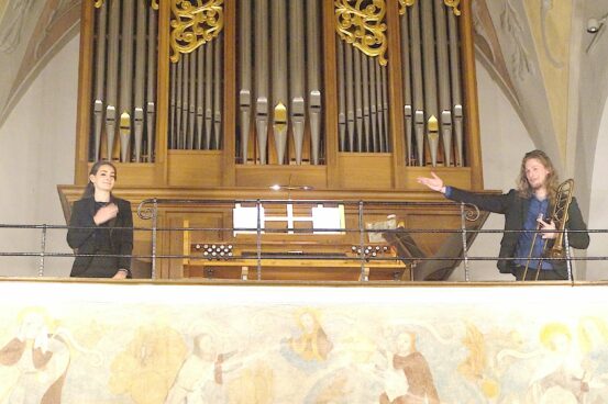 Wirkungsvoller Abschluss einer erfolgreichen Musiksommer-Saison in Grassau – „Wir lieben es, sehr viel Geräusch zu machen und die Kirche zum Beben zu bringen“, verriet Posaunist Peter Steiner in seiner sympathischen Moderation auf der Orgelempore der Kirche Mariä Himmelfahrt in Grassau nach der Begrüßung durch Traunsteins Altoberbürgermeister Christian Kegel. Der Rokoko-Stuck und die herrlichen alten Malereien auf den gotischen Gemäuern gaben den historischen Rahmen für die seltenen Bearbeitungen bekannter Werke für Orgel und Posaune. Glücklicherweise war die Brüstung der Empore nur zur Hälfte gemauert, so dass durch den schmiedeeisernen Aufsatz die Musiker gut zu sehen waren. Kein Wunder, dass die Blicke oft nach rückwärts gerichtet waren.