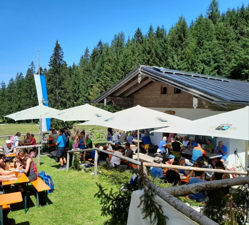 Bei bestem Bergwetter unterhielt die 18-köpfige Musikgruppe um Martin Falkinger rund 150 Alm-, Berg- und Blasmusikbegeisterte aus Nah und Fern – und auch das Almvieh. Feine Polkaklänge und vor allem schneidige Märsche begeisterten die Zuhörer. Beschlossen wurde der Tag mit den “Gebirgsmärschen” Gamsgebirg- und Bozener Bergsteigermarsch. Die angeeignete Jakobistärke wird den Musikanten bei den kommenden Auftritten der Überseer Standkonzerte, beim Reiter Gaufest und bei den anschließenden Gartenfesten sicher hilfreich sein.