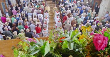 Foto: Hötzelsperger – Pfarrkirche “Maria Himmelfahrt” in Prien am Festtag mit Kräuterweihe