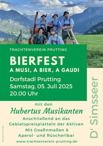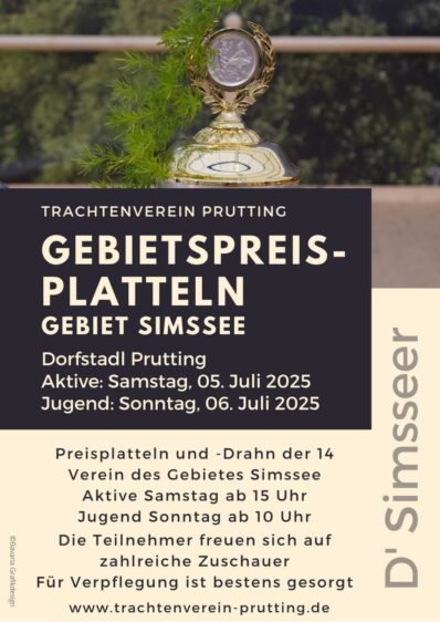 Unterteilt in jeweils zwei Gruppen – entscheidend ist das Geburtsdatum – und bei den Buam noch zusätzlich die „Buam Altersgruppe“ kämpfen sie um die besten Plätze. Hinzu kommen noch vier Gruppen, die im Gruppenwettbewerb mit jeweils vier Paaren um die Siegerplätze kämpfen. Anschließend lädt der Trachtenverein Prutting zum Bierfest ein, bei dem ab 20:00 Uhr die „Hubertus Musikanten“ für beste Stimmung sorgen. Am darauffolgenden Sonntag ist der Nachwuchs des 14-Vereine starken Gebiets an der Reihe. Ab 10:00 Uhr heißt es für 193 Dirndl und Buam und zusätzlich fünf Jugendgruppen Nervenstärke beweisen und das erlernte umsetzen. Erfreut zeigt sich Gebietsvertreter Hans März, der von steigenden Anmeldezahlen gegenüber den Vorjahren berichtet. Gemeinsam haben die Vereinsvertreter bei der letzten Gebietsversammlung beschlossen, eine 2-tägige Veranstaltung mit einem ansprechenden Abendprogramm am Samstag anzubieten. „Wenn auch beim Platteln, Drahn und Tanzen um jeden Punkt gekämpft wird, am Ende sind wir alle Teil einer großen Gemeinschaft und ich freue mich auf alle Teilnehmer, die Musikanten, Gäste und Zuschauer“, so März, der mit dem Gebiet Simssee eines der acht Gebiete im Gautrachtenverband I vertritt.