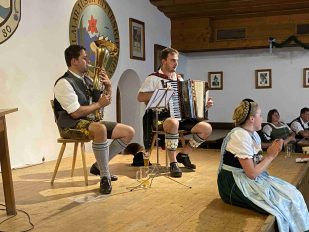 Vor den Ehrungen bedankte sich Vorstand Kaufmann bei allen, die für das gute Gelingen dieses Abends beigetragen hatten, an erster Stelle den Jugendvertretern Theresa Kaufmann, Theresa Stoib und Antonia Wörndl, sowie Hans Schnaiter, Peter Pertl und Christian Lampersberger. Des weiteren beim Vorplatter Wolfgang Scheck und Dirndlvertreterin Maria Pfaffinger. Auch den Eltern galt sein Dank, die jedes Mal ihre Kinder zu den Proben schicken und sie für die Auftritte „sauber herrichten“.