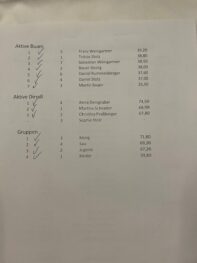 - Aktive Buam: Franz Weingartner (Tagessieger mit 39,2 Punkten) vor Tobias Stolz und Sebastian Weingartner,