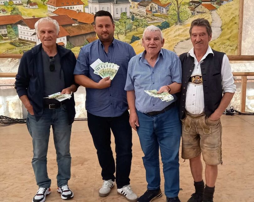 Der erste Preis ging von Frasdorf bis nach Fischbachau: Maximilian Eck hatte das meiste Glück und das beste Blattl: er belegte den Spitzenplatz bei den Meisterschaften im Schafkopfen beim Gründungsfest der Frasdorfer Feuerwehr und des Trachtenvereins vor Georg Pill aus Stephanskirchen und Werner Sommer aus Rohrdorf. Zum Jubiläum der Frasdorfer Vereine fand diese offene Schafkopf-Meisterschaft statt; weil ein paar Tiroler mitmachten, war sie sogar international.