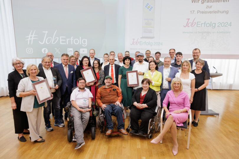 Bericht: Bayerisches Sozialministerium – Gemeinsame Preisverleihung JobErfolg 2024 von Sozialministerin Ulrike Scharf und des Beauftragten der Bayerischen Staatsregierung für die Belange von Menschen mit Behinderung Holger Kiesel – Foto: StMAS / Nötel
