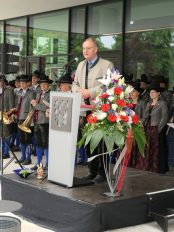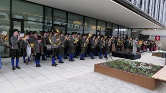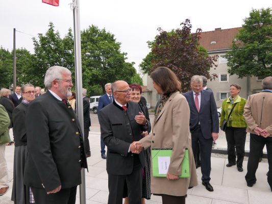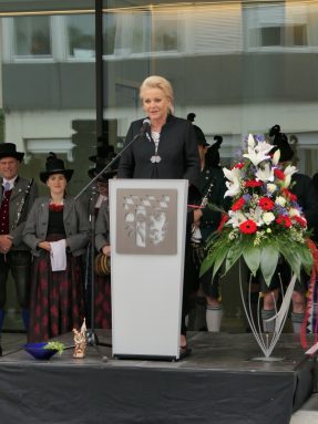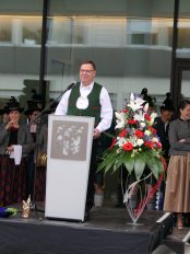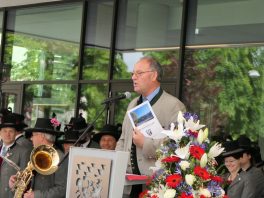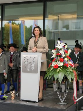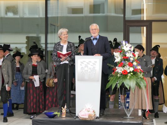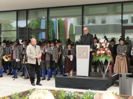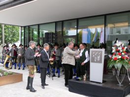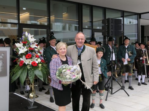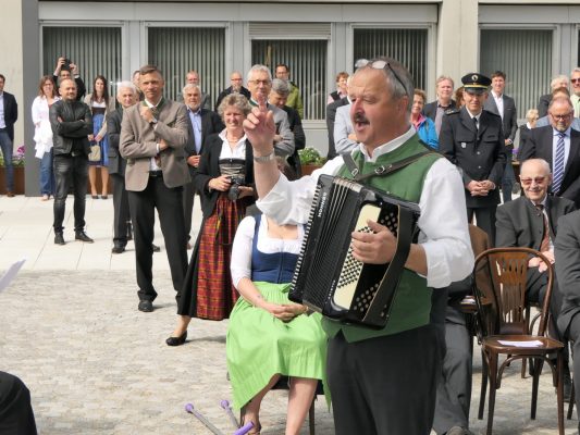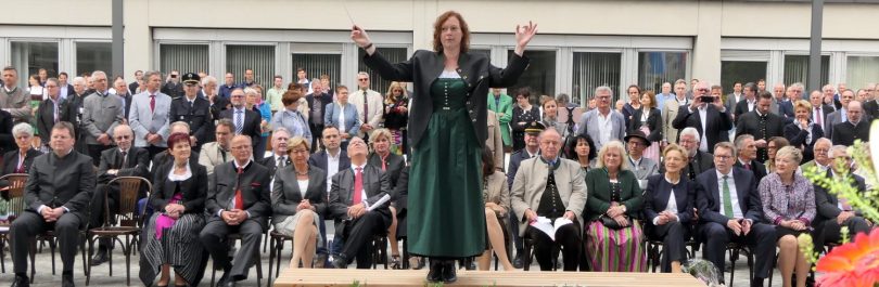 Festlich eingeweiht wurde am Wochenende der Neubau für rund 100 neue Mitarbeiter des Landratsamtes Rosenheim. Musikalisch umrahmt wurde die Einweihungsfeier vom Chor der Bürgermeister sowie den Musikkapellen aus Kiefersfelden, Bernau, Vagen und Wasserburg. Unter der Leitung von Komponistin Michaela Haindl präsentierten sie erstmals überhaupt einen Landkreismarsch. Für die kulinarische Versorgung sorgte das Team von Entenwirt Peter Schrödl vom Samerberg. Von der Einweihung mit Premiere des Landkreismarsches einige Bilder.