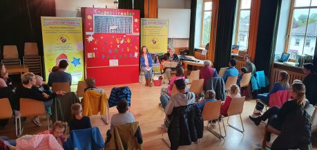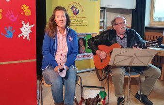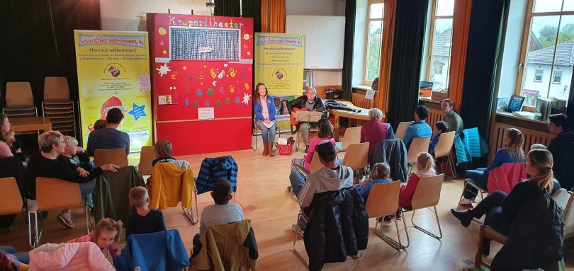 Zunächst spielten und sangen Max Breu und Kathy Puchalla die bekanntesten Kinderlieder. Bei „Alle meine Entchen“ oder „Summ, summ summ“ waren sogar die Erwachsenen textsicher. Natürlich durfte auch der Kasperl-Klassiker „Tri Tra Trallala“ nicht fehlen.