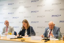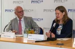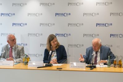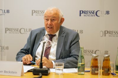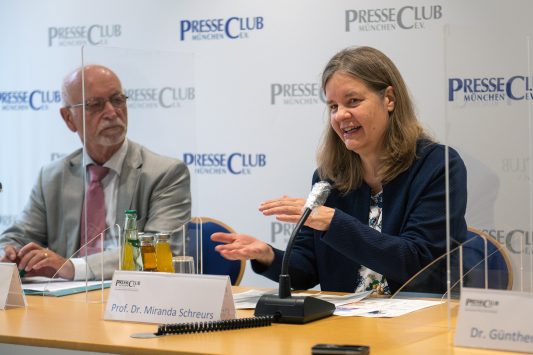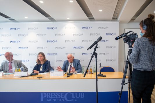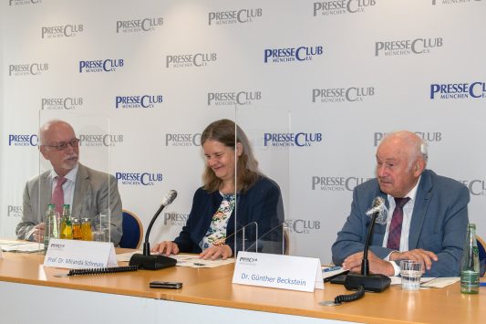 Im Presse-Club Gespräch erläuterte Beckstein gemeinsam mit der Vorsitzenden des Gremiums, der Münchner Lehrstuhl-Inhaberin für Umwelt- und Klimapolitik an der TUM-Hochschule für Politik, Professor Dr. Miranda Schreurs, das Verfahren sowie Chancen und Risiken für Bayern.