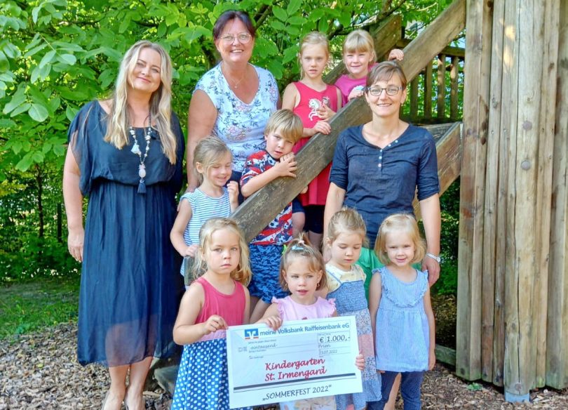 Da hatte Hauptgeschäftsstellenleiterin Katharina Weiß von der Volksbank Raiffeisenbank eG in Prien aber ein großes Geschenk dabei: Der Elternbeirat und die Leitung des Kindergarten St. Irmengard in Prien möchten sich herzlich für die großzügige Spende von 1.000.- bedanken! Das Geld kommt voll und ganz den Kindern zugute. Unter anderem können davon neue spannende Spielsachen und -geräte für drinnen und draußen angeschafft werden.