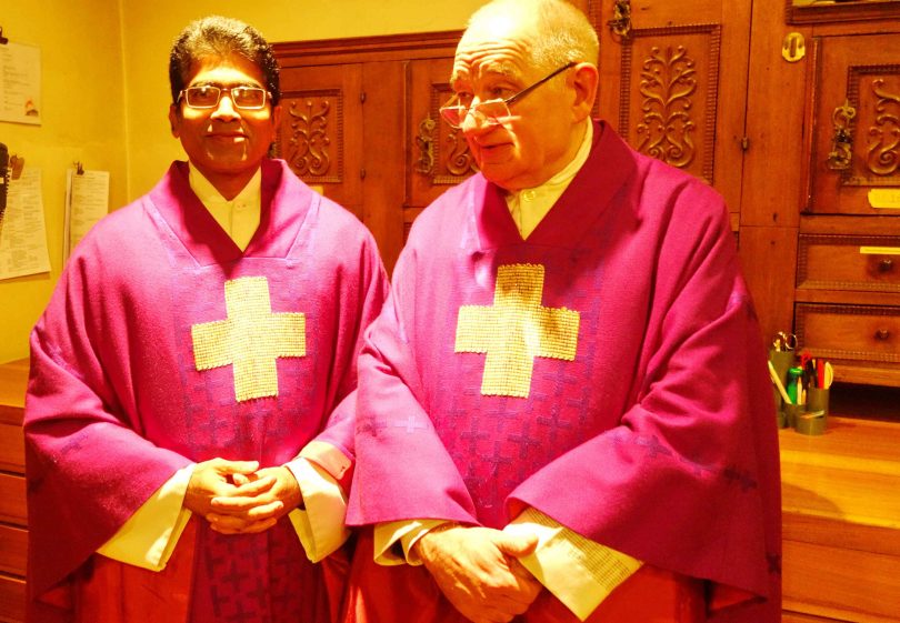 Fotos: Hötzelsperger – Prediger und Prof. dr. Winfried Haunerland mit Pater Joshy am Eröffnungsabend