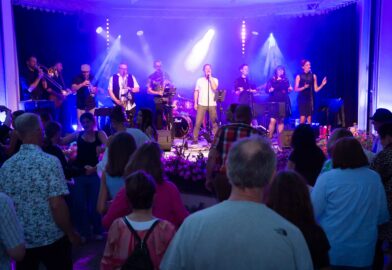 Dass die „Blues-Blosn“ ihr Publikum mit fetzigem Groove und Spaß auf der Bühne ebenso begeistern kann, zeigte sich schnell. Soul- und Bluesstücke, u.a. von den „Blues Brothers“ gehörten ebenso zum Programm wie Kult-Oldies oder ein Ausflug in den Pop mit „Abba“. So war für jeden etwas dabei und es dauerte nicht lange, bis es bei Songs wie „Son of a Preacher Man“, „Celebation“ oder Joe Cocker‘s „You Can Leave Your Hat On“ immer weniger Zuhörer auf den Sitzen hielt und sich die Tanzfläche vor der Bühne zusehends füllte.