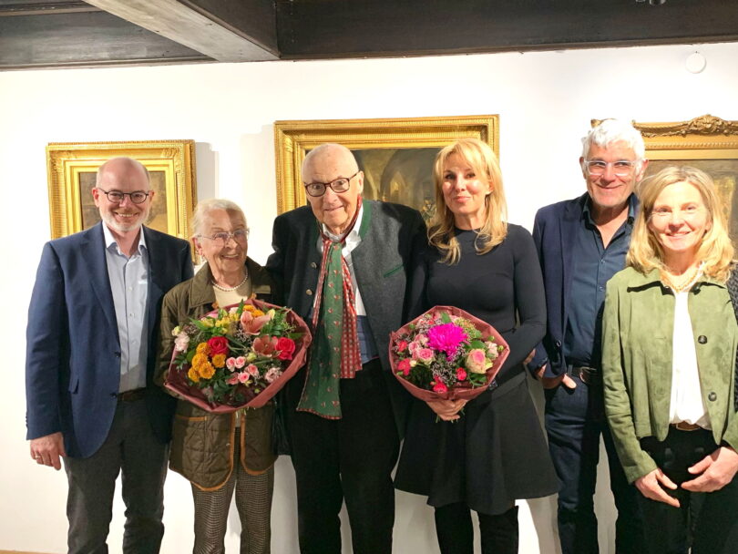 „Mit dieser Ausstellung schlagen wir eine Brücke – nicht nur zwischen zwei herausragenden Künstlerpersönlichkeiten, sondern auch zwischen zwei Regionen, zwei Lebenswelten, und letztlich zwei künstlerischen Handschriften, die sich auf faszinierende Weise ergänzen und kontrastieren“ – mit diesen Worten begann Zweiter Bürgermeister Michael Anner junior seine Willkommensgrüße. Und Ingrid Fricke als Dritte Vorsitzende vom Kulturförderverein und Kuratorin ergänzte mit ihren Ausführungen die Besonderheiten der Ausstellung. Bei dieser sind 25 Bilder von Hugo Kaufmann aus der ursprünglichen Sammlung Abé und ebenso viele Bilder von Anton Burger aus der Stiftung Kronberger Malerkolonie zusammen mit Leihgaben aus der Neuen Pinakothek München zu sehen. Mit einem Blumenstrauß bedankte sich Bürgermeister Anner bei Ingrid Fricke und bei Brigitta Abé für das Zustandekommen des Euroart-Kulturangebotes für die Priener und ihre Gäste.