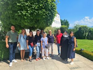 Das PriMa-Team freut sich zukünftig über die Fraueninsel und deren Unterkunftsmöglichkeiten Auskünfte erteilen zu können: (v.l.n.r.) Der Leiter des Tourismusbüros Prien Florian Tatzel, die Mitarbeiterinnen des Tourismusbüros Prien Magdalena Berka, Sarah Völk, Katrin Fink, Andrea Stephan, Judith Schmidbauer und Gaby Hauk gemeinsam mit dem Ersten Bürgermeister der Gemeinde Chiemsee Armin Krämmer, Schwester Scholastika und der Geschäftsführerin der Prien Marketing GmbH Andrea Hübner.