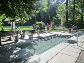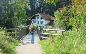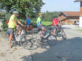 Das Motto der Ausfahrt in kleiner, corona-konformer Runde lautete „Von Kneipp-Becken zu Kneipp-Becken“. Allein in Prien, seit 60 Jahren Kneipp-Kurort, gibt es drei Kneipp-Becken und eine aktive Zusammenarbeit mit dem örtlichen Kneipp-Verein. Um all diese Kneipp-Anwendungsmöglichkeiten zu entdecken und zu nutzen wurde eine Tour von Prien nach Prien gewählt. Dabei kam es zu Stationen in Frasdorf, Aschau und Bernau, in Aschau beim Moorbad und in Bernau im Kurgarten mit weiteren Wassertretbecken. Auf Priener Gebiet begann die Tour im Eichental und sie endete beim Feßler-Weiher und im Kleinen Kurgarten, zum Teil ging es dort nach geschaffter Radltour mit Handtuch-Ausstattung ins kühle Nass. Im westlichen Prien machte Reinmund Hobmaier gleich mehrfach Station, so beim gemeindlichen E-Werk, das sich vom Dampfbetrieb um 1900 zu einem Wasserkraft-Denkmal entwickelt hat (zweimal im Jahr gibt es im übrigen Führungen). Die nächste Station war Munzing, dort werden auf Bio-Basis Rinder und Hähnchen gehalten, Bauer Thomas Mayer informierte über die steigende Nachfrage von seinen Hähnchen, deren freies Leben sich bei natürlich höherem Aufwand auch auf die Qualität auswirkt. Nur wenige hundert Meter weiter war der nächste Halt mit Informationen zu ländlichen Anstrengungen für regional erzeugte Lebensmittel. Dies war beim „Wastlhof“, der sich mit seinen Stallungen und Wiesen auf Priener Freilandeier und weitere davon abgeleitete Produkte spezialisiert hat. Von all den gemachten Radl-Erfahrungen und individuellen Informationen zeigte sich Mit-Radler Hellmut Müller aus dem Erzgebirge (im Rahmen seines regelmäßigen Besuchs bei seiner Tochter in Prien) angetan: „Prien hat viel zu bieten, Wetter, Chiemsee, Ausflugs- und Freizeit-Möglichkeiten sind echt stark, die Radler-Initiative ist eine tolle Idee, schade ist nur, dass im Priener Zentrum Fußgänger und Radler im Verkehr echt gefährdet sind“ – so der Priener-Stammgast. Aufgrund der guten Resonanzen der „Gesundheits-Radführung“ bieten die Priener Marketing GmbH und Rad-Wanderführer Reinmund Hobmaier noch eine zweite Tour in Abstimmung mit dem ADFC an sie beginnt am Donnerstag, 17. September um 10 Uhr vor dem Haus des Gastes, vorherige Anmeldung bei Hobmaier, Telefon 08051-61917.