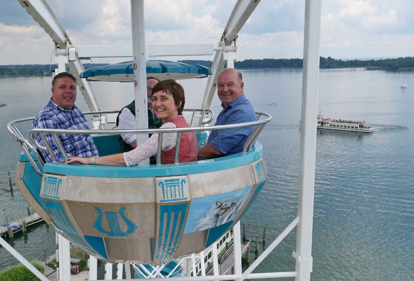 Das Riesenrad in Prien-Stock im Hafen der Chiemsee-Schifffahrt dreht täglich ab 10 Uhr bis ca. 20 Uhr die aussichtsreichen Runden – Ein Besuch lohnt sich.