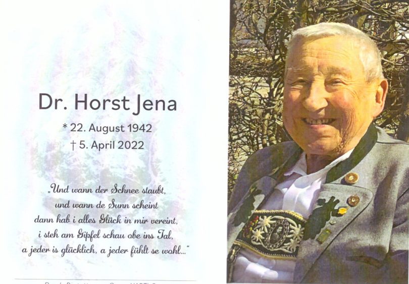 Völlig überraschend und im 80. Lebensjahr stehend verstarb während eines Ski-Aufenthaltes in Österreich Dr. Horst Jena aus Hittenkirchen. Der Verstorbene war gerade durch seine lange Lehrtätigkeit im und für das Priener Ludwig-Thoma-Gymnasium eine über seine Familie hinaus geschätzte Persönlichkeit. Pfarrvikar Gottfried Grengel erinnerte bei der Trauerfeier in der Pfarrkirche „Mariä Himmelfahrt“ an das tüchtige Wirken von Dr. Horst Jena, an seine Heimat-Verbundenheit und an seine verschiedenen ehrenamtlichen Tätigkeiten.
