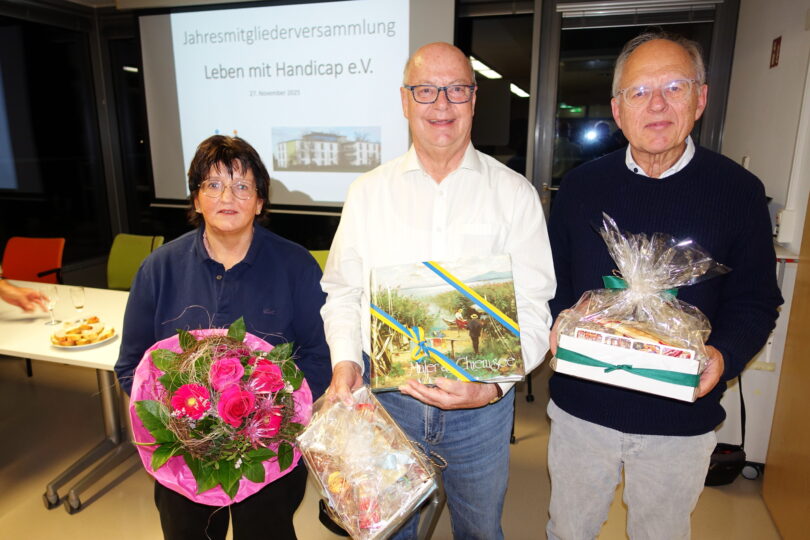 Noch ehe die Neuwahlen abgewickelt wurden, erinnerte Günther Bauer an das abgelaufene Vereinsjahr, unter anderen an das „Stauden-Fest“, an fünf Informationsabende, an drei Wohn-Seminare, an zahlreiche Einzelberatungen, an eine Zukunftskonferenz sowie an eine erfolgreiche Gewinnung von Ehrenamtlichen, die sich in den Dienst der Bewohner und der Wohnanlage stellten und auch weiterhin stellen werden. Nicht spurlos gingen die Auseinandersetzungen mit dem Bezirk Oberbayern zum Thema Nebenkostenabrechungen vorüber. Drei eerforderliche Musterklagen bewirkten einen enormen Zeit- und Geldaufwand, was aus Sicht des Vereins unnötig und vermeidbar gewesen wäre. Die Gründung des neuen Dienstes „Recht haben – Recht bekommen“ soll den Bewohnern der Wohnanlage aber auch anderen Menschen mit Einschränkungen zur Seite stehen, unterstützt wird diese unter anderem von der „Aktion Mensch“ und von der OVB-Weihnachtsaktion 2025 „Heimatlichter“. Seitens des Vereins stellen sich Irmi Heindlmeier, Sabine Müller, Tanja Schoemackers und Günther Bauer als Ansprechpartner zur Verfügung (recht@handicap-rosenheim.de). In der freien Aussprache bedankten sich Stefan Scheck und Sabine Müller von der Mayer-Reif-Scheck ambulante Pflege und Betreuung GmbH für die gute Zusammenarbeit im Sinne eines einzigartigen Wohn-Projektes für Menschen mit Einschränkungen. Mit einem Glas alkoholfreiem Sekt und mit kleinen Happen klang die harmonische Zusammenkunft aus.