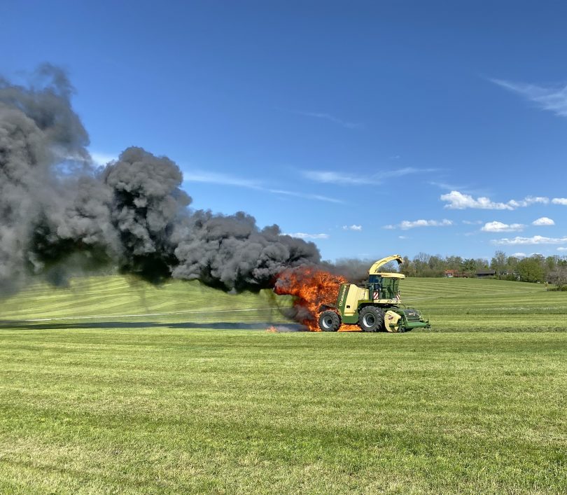 Am Montag gegen 15 Uhr wurde der Polizei der Brand eines Feldhäckslers in Prien auf einem Feld zwischen Siggenham und Munzing mitgeteilt. Nachdem der 30-jährige Fahrer des Häcksler während seiner Feldarbeit bemerkte, dass an seinem Fahrzeug hinten Rauch und Flammen aufsteigen, versuchte er noch vergeblich mit einem an Bord befindlichen Handfeuerlöscher den Brand zu löschen.