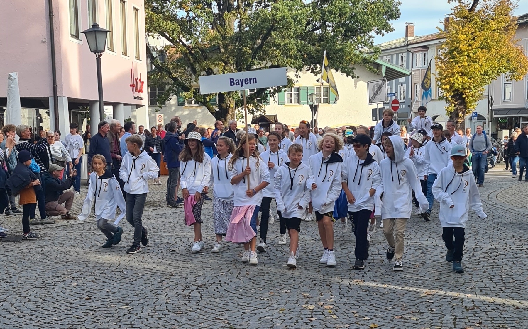 Zum Auftakt der IDJM marschierten die jungen Seglerinnen und Segler wie bei Olympia auf dem Priener Marktplatz ein.