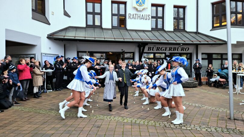 Nach den Begrüssungsworten durch ersten Bürgermeister Andreas Friedrich folgte die friedliche Übergabe des Rathausschlüssels an die neuen Regenten. Die Gardemädels der Großen Garde zeigten nun, was sie den Sommer über neu einstudiert hatten und begeisterten das Publikum mit Ihrem neuen Gardemarsch. Auch die Prinzenpaare zeigten Ihr Können in einer kleinen Walzerrunde, bevor Bürgermeister Andreas Friedrich mit Prinzessin Johanna und Bürgermeister Michael Anner mit Prinzessin Sabrina den obligatorischen Bürgermeisterwalzer präsentierten.