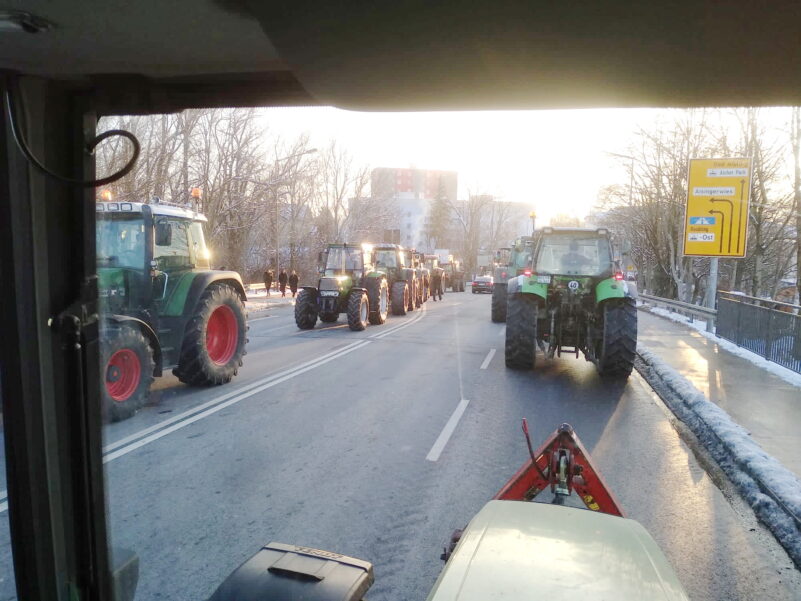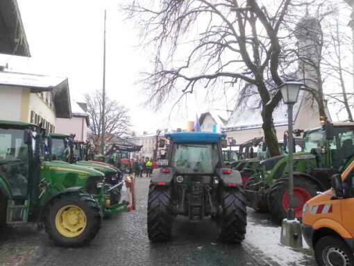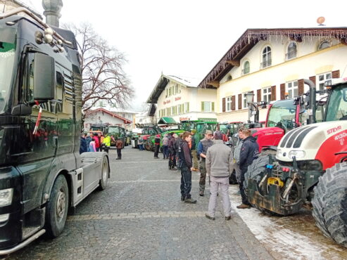 Auch der Ortsverband Prien des Bayerischen Bauernverbandes, dessen Mitglieder und auch weitere Verbündete trafen sich inmitten der Marktgemeinde Prien, um sich auf den Weg zur Groß-Demonstration nach Rosenheim zu machen.