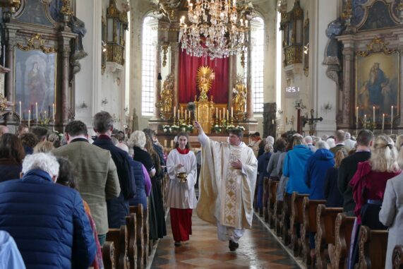 Für den Pfarrgemeinderat, für die Kirchenverwaltung und für die vielen Ehrenamtlichen und Gläubigen bedankte sich Pfarrgemeinderatsvorsitzende Rosi Hell beim Gottesdienst, der von Chor und Orchester sowie von den Bläsern der Chorgemeinschaft „Mariä Himmelfahrt“ unter der Leitung von Kirchenmusiker Bartholomäus Prankl festlich gestaltet wurde, sie sagte zu Gottfried Grengel: „Du hast Menschen, die schon sehr im Glauben gefestigt sind auf ihrem Weg gestärkt. Aber Du hast auch Menschen weitergebracht, die noch immer auf der Suche waren und ihnen gezeigt, dass da noch mehr möglich ist und die Wege dazu bereitet. Auch Menschen, die sich von Gott und von der Kirche abgesandt hatten, haben durch Deine überzeugende Art wieder zum Glauben zurückgefunden“. Abschließend bezeichnete die Vorsitzende des Pfarrgemeinderates Gottfried Grengel einerseits als Vertrauten, Bruder und Freund und andererseits am Altar ganz und gar als Priester sowie draußen als einen Seelsorger, wie man ihn sich nur wünschen kann. Nach dem Hochamt und den Dankesworten bestand für viele Kirchgänger noch gute und gerne angenommene Gelegenheit, mit Pfarrer Gottfried Grengel persönliche Worte zu wechseln. Seine letzten beiden Gottesdienste im Pfarrverband Westliches Chiemseeufer wird Pfarradministrator Gottfried Grengel am Sonntag, 27. April um 8.30 Uhr in St. Salvator (beim traditionellen „Weißen Sonntag“) sowie um 10 Uhr in der Pfarrgemeinde St. Nikolaus Rimsting halten.