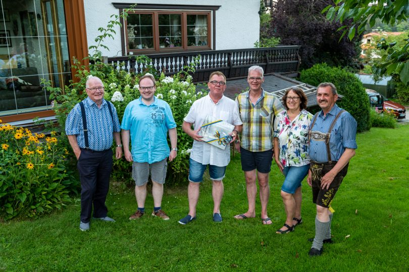 Seit fast 40 Jahren bestehen freundschaftliche Verbindungen mit der hessischen Hochtaunus-Gemeine Weilrod und speziell mit dessen Gemeindeteil Hasselbach und der Marktgemeinde Prien a. Chiemsee. Die ersten Kontakte knüpfte der damalige Schatzmeister der Feuerwehr Hasselbach, Werner Jeck als er anlässlich eines Kuraufenthaltes in der Klinik St. Irmingard in Prien einen Heimatabend im damaligen Großen Kursaal besuchte. Daraufhin lud die Feuerwehr von Hasselbach mit ihrem Vorsitzenden Hermann Mühle die Priener Blaskapelle, die Aktiven vom Trachtenverein „Daxenwinkler“ Atzing und den Tegernseer Zwoagesang zum Jubiläum der Feuerwehr ein. Bei einem Bayerischen Abend wurden viele Freundschaften geschlossen, die bis heute zu vielen gegenseitigen und kulturellen Begegnungen geführt haben. Hermann Mühles Sohn Stefan, selbst lange Vorstand der Hasselbacher Feuerwehr kommt seit dem ersten Besuch der Chiemgauer regelmäßig und mehrmals im Jahr zu einem Besuch bei der Familie von Rosi Hötzelsperger in Prien-Prutdorf. Der heurige Sommerbesuch war guter Anlass für Priens neuem Bürgermeister Andreas Friedrich und für Ehrenbürger Michael Anner senior, die bisherigen Kontakte und Freundschaften weiter fortzuführen. „Als aktiver Feuerwehrmann und als für den Priener Tourismus Mit-Verantwortlicher begrüße und unterstützte ich gerne diesen Kontakt zwischen unseren beiden Gemeinden“ – so Bürgermeister Friedrich, der an Stefan Mühle für dessen Prien-Treue ein Chiemsee-Maler-Buch und ein „Chiemsee-Wasser“ überreichte.