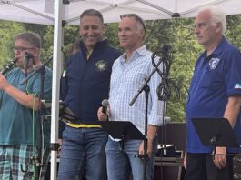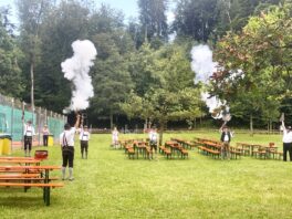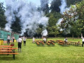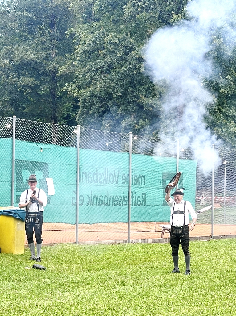Der Vereinstrio mit den Vorsitzenden Peter Steiger (Fischereiverein), Florian Wunderle (Schützengesellschaft) und Helge Luesebrink nahmen zum Auftakt miteinander die Begrüßung der Gäste vor. Ihr erster Dank galt dem Kur- und Tourismusverein sowie dem Ersten Bürgermeister Andreas Friedrich, der sich mit vielen weiteren Ehrengästen aus den Reihen des Priener Gemeinderates und der Ortsvereine von Prien und Umgebung am schönen und lauen Sommerabend im Kurpark erfreute. Große Freuden herrschten besonders bei den vielen Kleinen, denn die drei Veranstaltervereine machten ihr Waldfest im Kurpark zu einem richtigen Familienfest. So übernahmen die Vereinsmitglieder ehrenamtlich die Bewirtung und den Service mit Unterstützung der Landmetzgerei Mayer aus Bad Endorf und des Hofbräuhauses aus Traunstein. Die Fischer mit ihrer Jugendabteilung boten ein Zielwerfen und Test-Angeln nahe dem Steckerlfisch-Grillplatz an, der Tennis-Club bereitete ein Dosenschießen vor, an einem weiteren Platz gab es Gaudi beim Preisangeln mit nachhaltigen Kunststoffenten und die Böllerschützen der Königlich Privilegierten Feuerschützengesellschaft eröffneten das Fest lautstark mit einem dreifachen Salutschießen. Alsdann übernahmen die Sulzberg-Musikanten die Aufgabe, für Musik und Stimmung zu sorgen, was ihnen bestens gelang zumal sich im Laufe des Abends immer mehr Priener und Gäste einfanden. Letztlich ging das Familien-Fest-Motto „Miteinander und Füreinander“ bestens auf. Diesem Motto wurde und wird es auch gerecht, dass die rund 60 ehrenamtlichen Helfer aus den drei Vereinen die Erlöse des Waldfestes den Aufgaben der jeweiligen Vereinsjugendabteilungen zukommen lassen. Unisono erklärten sie auch noch, dass das Priener Kurpark-, Wald- und Familienfest zu einer festen Einrichtung im Priener Sommer werden soll.