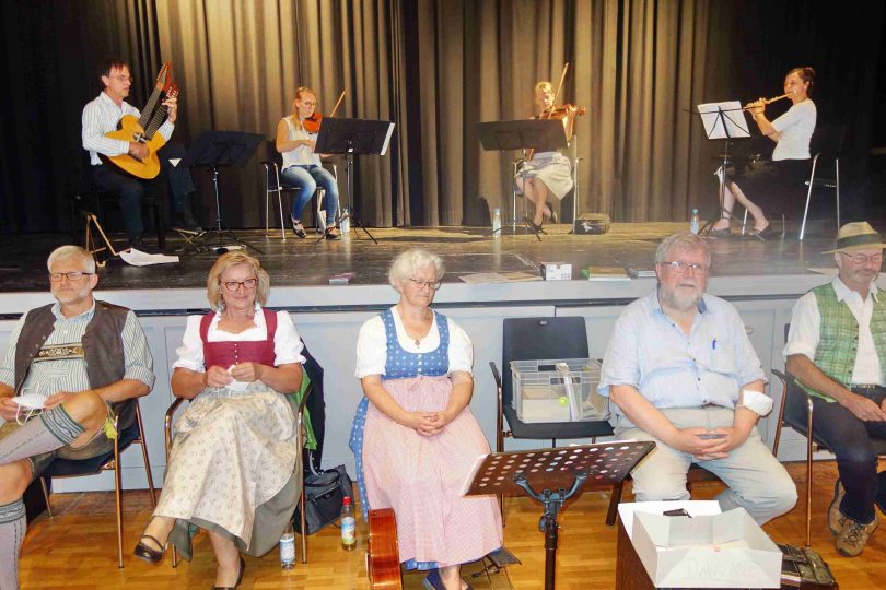 Den musikalischen Auftakt bildete ein Schottisch aus den Handschriften von Leopold Schader, der in Prien Maurer, später Kondukteur (Schaffner) bei der Chiemsee-Bahn und ab 1912 Betreiber einer Kohlenhandlung war. Das Stück spielte ein von Martin Prochaska aus Fischbachau zusammengestelltes Salonquartett. Einen weiteren Polka aus der alten Priener Notensammlung gab Musikschulleiterin Brigitte Buckl (Akkordeon) mit Sabine Werner (Flöte und Gitarre) zum Besten. Michaela Leidel, Kulturreferentin der Gemeinde Bernau informierte, dass sie bereits vor vielen Jahren in Prien nach alten Noten und Liedern recherchierte. Dabei nahm sie auch ein „Priener Lied“ („Wo mag denn das gewesen sein? Es war in Rimsting oder in Bernau, in Rosenheim oder in Aschau in Breitbrunn oder in Eggstätt – aber in Prean, da gibt es sowas nicht“) vom damaligen Priener Schützenhauswirt Walter Gerlmayer auf. Zusammen mit ihrem Mann Georg trug Michaela Leidel dieses „Priener Lied“ und hernach zusammen mit Eva Bruckner, einer langjährigen Mitarbeiterin von Ernst Schusser beim Volksmusikarchiv auch noch ein „Fischer-Lied von der Prien“ aus der Sammlung von Wastl Fanderl vor. Einen Halbwalzer in B aus der Feder von Peter Schmid spielte die Klarinettenmusik von Wolfgang Forstner und mit drei Walzer-Stücken erinnerte Brigitte Buckl an den Zitherspieler Wolfgang Bachleitner. Die Zuhörer kamen sogar selbst zum Singen, nachdem Liedblätter aus den Feld- und Archivforschungen für Prien und Umgebung seit Ender der 1970er Jahre verteilt wurden, zum Beispiel mit einem Wildschützenlied und mit Kirchweih-Gstanzl aus den Aufschreibungen von Franziska Hager.