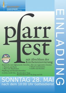 Mehrjährig und aufwendig war die Renovierung der Priener Pfarrkirche „Maria Himmelfahrt“. Voll Dankbarkeit und Freude über das gelungene Werk wird dies würdig, festlich und gesellig am Sonntag, 28. Mai gefeiert. Beginn der Feierlichkeiten ist um 10 Uhr mit einer Eucharistie-Feier, ab 11.15 Uhr wird im und um´s Pfarrzentrum bei gutem Essen, passenden Getränken, mit Priener Blasmusik und mit einem eigenen Kinderprogramm. Das Pfarrfest steht der gesamten Bevölkerung und allen Gläubigen vom Pfarrverband Westliches Chiemseeufer zum Besuch offen.
