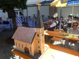 Ehe Pfarrer Hofstetter beim sommerlichen Pfarrfest auf dem Pfarrplatz die Zahlen der Kirchenrenovierung erläuterte, sprach er beim festlichen Gottesdienst unter der musikalischen Leitung von Kirchenmusiker Rainer Schütz von einer lebendigen Kirche, die einer ständigen Erneuerung bedarf. „Ich mag Dich!“ – mit diesen einfachen Worten sagte der Pfarrer JA zu einem Bauwerk, das schon viel erlebt hat und noch viel erleben wird. Erlebnisreich war auch das Pfarrfest, das aufgrund vieler ehrenamtlicher Helferinnen und Helfer und dank der gut aufspielenden Priener Blasmusik zu einem richtigen Fest wurde. Gerne wurden die kulinarischen und musikalischen Angebote von vielen Prienern und Gläubigen angenommen. Inmitten des Festes stand ein Kirchenmodell und Pfarrer Hofstetter hatte mit Blick auf die kleine und große Kirche vielfachen Grund „Vergelt´s Gott“ zu sagen. „Mein erster Dank gilt den Mitgliedern der Kirchenverwaltung, die sich allesamt ehrenamtlich engagieren, die mit Weitblick 2010 den Beschluss zur Aussenrenovierung gefasst und das Vorhaben mit Sachverstand und Ausdauer verfolgt haben“ – so Pfarrer Hofstetter, der namentlich den inzwischen verstorbenen Kaspar Steindlmüller nannte. Ein weiterer Dank galt der Diözese, der es nach den Worten von Pfarrer Hofstetter ein hohes Anliegen ist, Kirchen nicht nur als prägende Bauwerke in der heimatlichen Landschaft und Zeit, sondern auch als Stätte des Gottesdienstes und des Gebets zu erhalten. Fleiß, Können, Geduld und Verständnis – all dies gab es vom Architekten, den Firmen, den Arbeitern, Nachbarn und Geschäftsleuten bei dieser Baumaßnahme, so dass der ursprüngliche Kostenrahmen eingehalten und stets eine gute Stimmung gegenüber dem großen Bauwerk bewahrt werden konnte. Bestandteile der Baumaßnahmen waren unter anderem die Dachsanierung und die Erneuerung des von Karies befallenen Natursteins. Wie Pfarrer Hofstetter erklärte, gibt es für die Priener Kirche auch fortan bauliche Aufgaben zu erfüllen. „Erst vor wenigen Tagen hat die Glockensteuerung gestreikt, da hat uns die Kirche über 30 Minuten volles Geläut zum Fest Christi Himmelfahrt geschenkt“ – so der Pfarrer, der zum Abschluss allen Anwesenden mit diesem Satz dankte: „Ich danke dafür, dass Sie unsere Kirche gern mögen und dass Sie dazu beitragen, die Kirche als Bauwerk und als lebendige Gemeinschaft in eine gute Zukunft zu führen“.