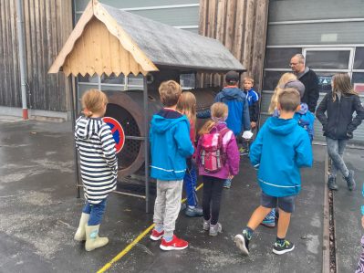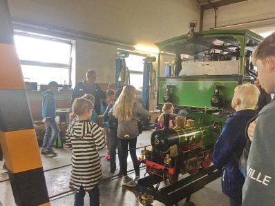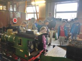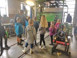 Groß war die Wissbegierde zu den im Programmheft angekündigten Fragen wie „Gibt es auf dem Chiemsee auch Eisbrecherschiffe?“, „Wie lange ist die Werft?“, „Warum wird der See immer kleiner?“ oder „Warum wird Ludwig II auch Märchenkönig genannt?“ Die perfekten Antworten zum Hafen und allem was dazugehört erfuhren die Kinder durch den Hafenmeister Günther Hartl, der die 15 Kinder auch gleich mit zur Werft begleitete. Aufregend war es dann für die interessierte Schar und auch für die beiden Betreuerinnen als der Hafenmeister unter anderem erklärte, dass die Schiffswerkstatt extra und exakt so groß gebaut wurde, damit das größte Schiff der Familie Feßler auf den Zentimeter genau darin Platz hat. Auf die Frage wie viele PS denn die Motorwinde wohl hat, die die schweren Schiffe auf Rollen in die Werft zieht, staunten alle nicht schlecht, dass es nur 16 Pferdestärken sind. Weiter ging es zum Lokschuppen der Chiemseebahn, vorbei an einem großen Haufen Kohle, den in dieser Menge manches Kind noch nie vorher gesehen hatte. In der Halle stand dann ein Waggon dieses historischen Zuges, der noch die ursprüngliche Farbe braun hatte und alle erfuhren, dass dies die Original-Farbe der Bockerlbahn war als diese vor nun 134 Jahren gebaut wurde.