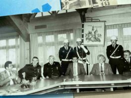 - Feuerwehr Hasselbach 1987 im Priener Rathaus mit FFW Prien (Foto Berger)