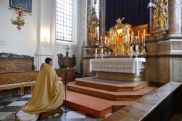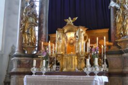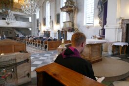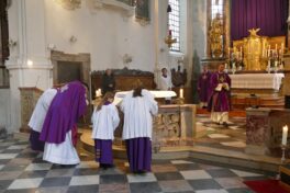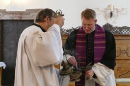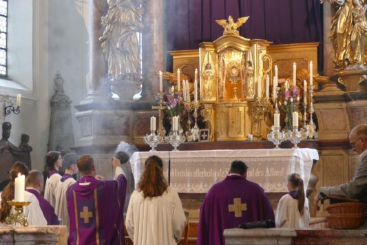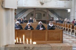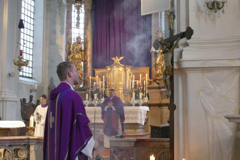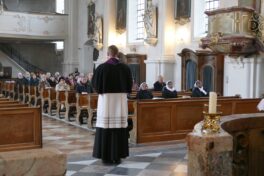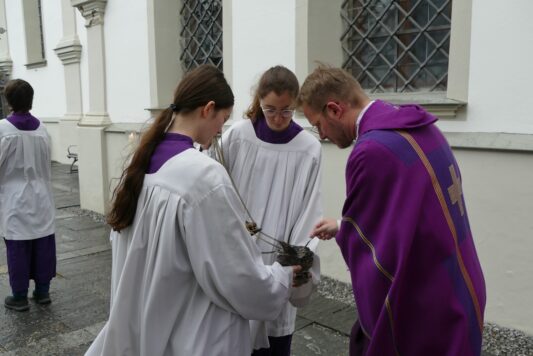 Die Gesänge der Choralschola in lateinischer Sprache verliehen der heiligen Messe eine ganz besondere Atmosphäre. Früher war der gregorianische Choral wesentlicher Bestandteil der liturgischen Handlung. In Prien haben wir das große Glück, diese Gesänge zu bestimmten Anlässen immer noch hören zu können. Die Stunden bis zur Andacht, mit der dritten Predigt, wurden begleitet von Orgelmusik, Lobpreis und stiller Anbetung. Die Andacht wurde mit einem schmerzhaften Rosenkranz eingeleitet.