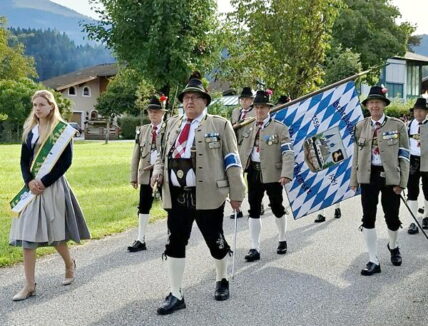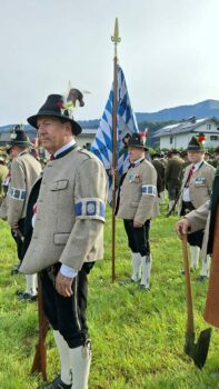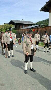 Mit einer großen Abordnung war auch die Gebirgsschützenkompanie Prien auf Einladung dabei. Beim abschließenden Festzug durch das Dorf wurde bei der Defilierung die Priener Kompanie vom Chiemsee herzlich vorgestellt. Mit einem Mittagessen im großen Festzelt nahm ein schöner und sonniger Tag unter Gleichgesinnten seinen Abschluss.