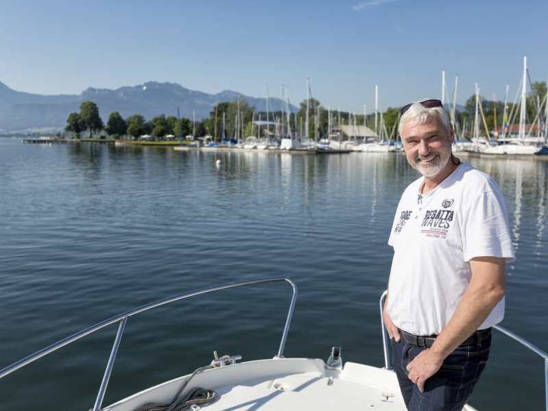 Foto: Prien Marketing GmbH, Michaela Röpke – Dirk Schröder Geschäftsführer der Chiemsee Marina GmbH leitet den Sportboothafen Stippelwerft. Insgesamt 4.000 Kubikmeter Kies und Erdreich legten das einst sumpfige Gelände trocken.