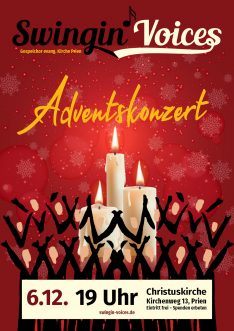 Ein besonderer Leckerbissen wird das Weihnachtskonzert am Freitag, den 06. Dezember 2019, in der ev. Christuskirche in Prien sein. Mit internationalen Songs, rhythmisch, besinnlich will der Gospelchor in die Weihnachtszeit einstimmen. Der Eintritt ist frei. Spenden sind willkommen.
