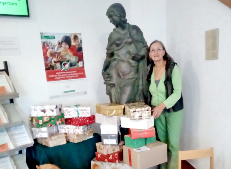 Priens Gemeinderätin Gabriele Schelhas informiert über den Verlauf und Abschluss einer besonderen Aktion: Die Priener Aktion” Weihnachten im Schuhkarton” ist beendet.