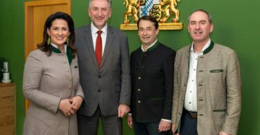 Foto: Hötzelsperger Tragen Verantwortung für das Jubiläumsfest 2025 – von links: Festleiter Florian Fischer, Zweiter Vorstand Fredi Köhler, Erster Bürgermeister Andreas Friedrich und Erster Vorstand Florian Kremp