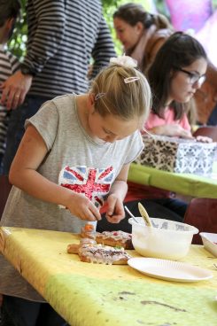 So kunterbunt wie die Eier an Ostern sind, so kunterbunt und wild ging es am Gründonnerstag, 13. April 2017 im Foyer des Chiemsee Saals zu. In Vorbereitung auf Ostern veranstaltete die Prien Marketing GmbH einen Bastelnachmittag für Eltern, Großeltern und Kinder jeglichen Alters. Mit geschickten Fingern machten sich die Mädchen und Buben bei den vielen Stationen ans Werk. Eifrig wurde ausgeschnitten, geklebt und gemalt. Besonders beliebt waren die Osterhasen und Ostereier aus Hefeteig, die alle im Laufe des Nachmittags bunt verziert wurden. Auch das Kinderschminken und bemalen der Gesichter kam gut an. Unzählige Motive zauberte Esther Schmid-Bodler, eine Mutter des Waldorfkindergartens, mit großem Geschick auf die Gesichter der geduldig da sitzenden Kinder. Manchmal gab es kein Durchkommen mehr an den Tischen der Bücherei Prien, so viele wollten einen Hasen auf einem Blumentopf oder ein Huhn aus Karton und echten Federn basteln. Rund 540 bunt gefärbte Priener Freilandeier vom Wastlhof wurden von den kleinen Künstlern mit Glitzerstaub verziert. Die Älteren hatten die verschiedenen Techniken schnell raus – bei den Kleineren mussten die freiwilligen Helferinnen noch ein wenig helfen. Für viel Freude sorgte die Tanzeinlage – gegen 14 Uhr wurde gemeinsam mit dem Tanzzentrum Ziegler eine Choreografie eingeübt. Gegen Ende der Veranstaltung wurden mit einer gemeinsamen Andacht die österlichen Tage eingeläutet. „Alles in allem war es ein sehr gelungenes Kinderfest und besuchermäßig mit über 100 Kindern ein voller Erfolg“, freut sich Andrea Hübner, Geschäftsführerin der Prien Marketing GmbH. „Das hat Spaß gemacht! Machen wir das mal wieder?“, fragte ein Kind beim Abschied. Die Prien Marketing GmbH sagt: Aber gerne und bedankt sich herzlich bei dem Wastlhof, der beteiligten Mutter des Waldorfkindergartens und allen weiteren Helfern, die den Kindern einen sehr schönen Nachmittag bereitet haben.