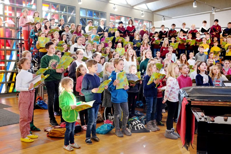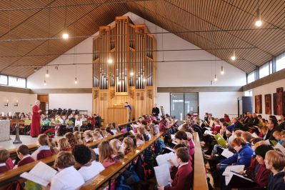 Am vergangenen Wochenende fand in den Räumen der Münchner Domsingschule der Kinderchortag der Diözese München und Freising statt. Organisiert und durchgeführt wurde das Event mit über 200 Kindern vom Bistumsverband der weltweiten Chorvereinigung „Pueri Cantores“. Alle 35 Kinder- und Jugendlichen, die sich derzeit in der Kirchenmusik „Mariä Himmelfahrt“ in Prien engagieren, sind Teil dieser internationalen Chorvereinigung. So machte sich Kirchenmusiker Bartholomäus Prankl mit 20 Kindern und drei Müttern aus Prien im Kleinbus von Helmut Krumrey auf den Weg nach München. Dort erwartete alle 16 teilnehmenden Chöre ein abwechslungsreiches Programm teils im Gesamtchor, teils in einzelnen „Workshops“ mit Elementen der Stimmbildung, Rhythmik, Bewegung und „Body Percussion“ mit renommierten Referenten. In der nahegelegenen Kirche „Namen Jesu“ fand in einer feierlichen Vesper der Tag seinen Abschluss. Es wurden Werke für großen Kinderchor und Orgel von zeitgenössischen Komponisten wie Andreas Unterguggenberger, Klaus Wallrath, Angelika Sutor, Christian Heiß und Arvo Pärt zur Aufführung gebracht. Die Leitung hatte der erste Vorsitzende des Bistumsverbandes von „Pueri Cantores“, Christian Schramm. Im Juli diesen Jahres findet in der italienischen Stadt Florenz das Internationale Jugendchorfestival von „Pueri Cantores“ statt. Auch dort werden 11 Jugendliche aus Prien zusammen mit Bartholomäus Prankl vertreten sein. „Chorsingen ist nachweislich gesund, stärkt das Selbstbewusstsein und die Konzentrationsfähigkeit und ist ein idealer Ausgleich zur Schule“ – so der Priener Kirchenmusiker. Wie das Sprechen muss das Singen schon im Kindesalter entwickelt werden. Die Katholische Pfarrei Prien bietet daher Kindern ab der 1. Schulklasse jeden Dienstag um 17 Uhr im Chorsaal des Pfarrheimes die Möglichkeit im Kinderchor das Instrument der eigenen Stimme zu entdecken. Ab etwa 13 Jahren proben die Jugendlichen am Donnerstag um 16.45 Uhr. Dort werden Sie altersgerecht weitergebildet, um gegebenenfalls in den Kammerchor „Capella Vocale Prien“ aufzusteigen. Die Leitung aller Chöre liegt in den Händen von Kirchenmusiker Bartholomäus Prankl. Weitere Informationen unter www.kirchenmusik-prien.de