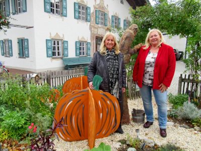 Foto: Hötzelsperger – Christiane Möhner und Ana Wäsler in dem von ihnen betreuten Kräutergarten vor dem Priener Heimatmuseum.