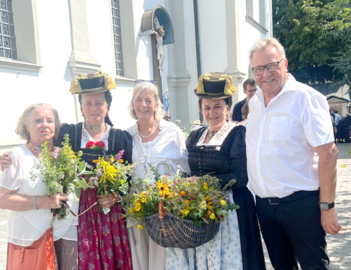 Unsere Bilder zeigen ein paar Eindrücke vom Priener Kirchenpatrozinium mit Kräuterweihe, auch Röckefrauen vom Priener Trachtenverein nehmen mit ihren selbst gebundenen Kräutersträußerln am Fest bei.