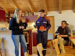 Im Rahmen seiner regelmäßigen Zusammenkünfte lud Präsident Alexander Hagenbrock vom Lions-Club Prien seine Mitglieder der Vorstandschaft zu einem Informationsabend in das Florian-Stüberl der Feuerwehr Atzing ein. Dort informierte Anna Boggusch über die im Jahr 2020 gegründete Jugendfeuerwehr Atzing, die derzeit über fünf Dirndl und 11 Buam stark ist. „Unser Bestreben ist es, für qualifizierten Nachwuchs bei der Atzinger Wehr zu sorgen, die Kameradschaft zu pflegen und für das soziale Engagement zu sensibilisieren“ – so die 25jährige Feuerwehrfrau, die in ihrem Einblick auf 15 Jahresübungen, auf die aktive Beteiligung bei der Sammelaktion für die Ukraine-Hilfe und auf erfolgreiche Teilnahme bei Wissens- und Fortbildungsveranstaltungen hinwies und die ihren Beitrag mit dem Satz beendete: „Die Jugend von Heute sind die Retter von Morgen“. Die Lions-Repräsentanten zeigten sich begeistert von den Ausführungen und Aktivitäten und versprachen, die Jugendfeuerwehr mit einer 1.000 Euro-Spende zu fördern. Dazu Präsident Alexander Hagenbrock: „Jetzt sind wir sicher, dass das Geld in besten Händen ist“. In einem weiteren Lichtbildervortrag informierte Anton Hötzelsperger über seinen beruflichen Weg unter dem Motto „Von der Kurverwaltung Prien bis hin zu den Samerberger Nachrichten“. Für die Spende an die Jugendfeuerwehr bedankten sich Feuerwehrvorstand Martin Loferer und Kommandant Paul Huber mit einer Leberkäs-Brotzeit im Florianstüberl.